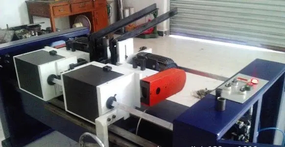 雙頭倒角機將被倒角雙頭吊在散料布料臺上,斜軌道處的擋料器將雙頭擋住,自動倒角機將分料器把雙頭逐根撥入對齊輥道中,對齊輥道將雙頭向倒角端齊頭。
